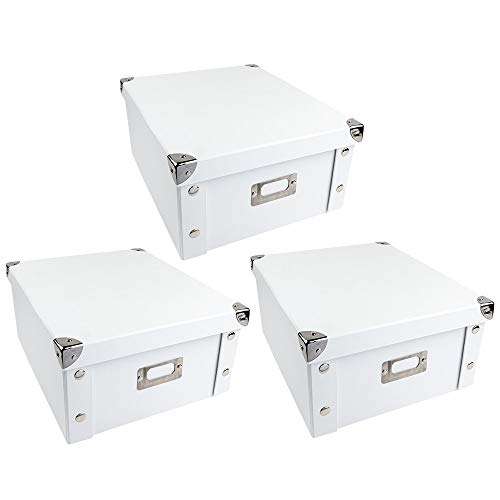 Ideen mit Herz organiseringslådor | set om 3 | förvaringslåda med lock | vikbar | tillverkad av kartong och metall | 11 liter | 31 cm x 26 cm x 14 cm (vit)