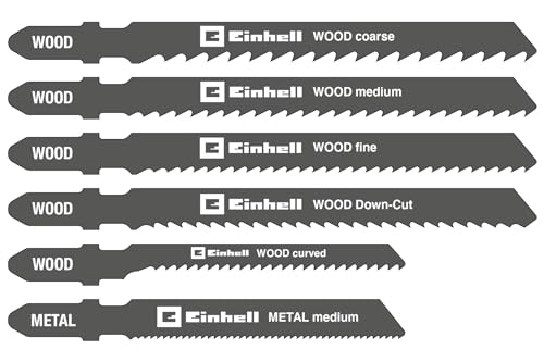 Original Einhell 10 st. Sticksågsblad (sticksågtillbehör, T-skaft, för trä och metall, inklusive förvaringslåda)