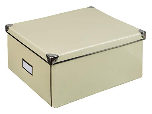 Idena 10518 – Förvaringslåda av fast kartong, lock med förstärkta kanter av metall, låda för allmän användning i kräm inklusive märkningsfält, för ordning i hushållet, kontoret och arbetsrummet