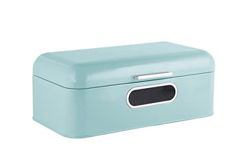 ECHTWERK Elegant retro brödlåda i metall med fönster, platsbesparande förvaringslåda, brödkorg med lock, håller brödet fräscht längre, ljusblå, 42 x 23 x 16,5 cm