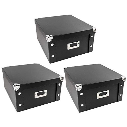 Ideen mit Herz organiseringslådor | set om 3 | förvaringslåda med lock | vikbar | tillverkad av kartong och metall | 11 liter | 31 cm x 26 cm x 14 cm (svart)