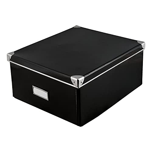 Idena 10520 – förvaringslåda av fast kartong, lock med förstärkta kanter av metall, låda för allmän användning i svart inklusive märkningsfält, för ordning i hushållet, kontoret och arbetsrummet