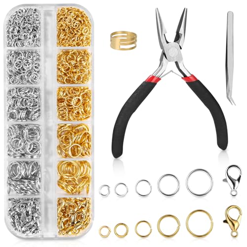 Bixury Öppna hoppringar i metall, 1 443 st guld och silver hummerlås lås för armband 4/5/6/8/10 mm med förvaringslåda för smyckestillverkning gör-det-själv tillbehör