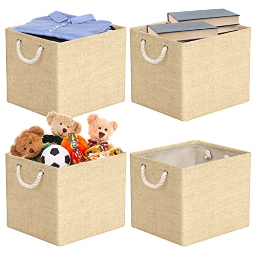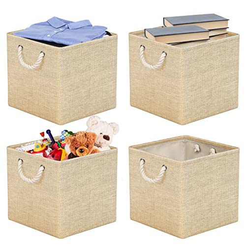 RIWNNI 4 stycken tyg förvaringslåda vikbar förvaringslåda förvaringslåda kanvas tygkorg förvaringskorg 33 x 38 x 33 cm för kallax hyllor, vikbar låda stabil och tvättbar-beige