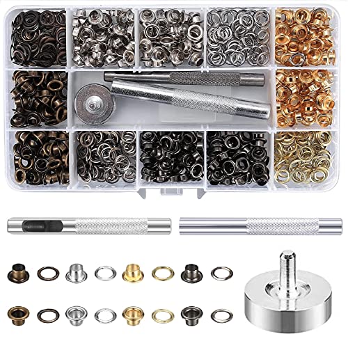 200 stycken öljetter verktyg 5 mm grovverktygssats, öljetttång metallöljetter brickor ögletång set, öljetter med skivor, öljetång loiteter med öljetter med förvaringslåda för tyg, presenning, läder
