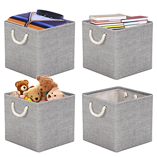 Förvaringsbox tyg 33 x 33 [4-pack], vikbar förvaringslåda för tyg, perfekt för kallaxhyllor, sovrum, barnrum – (grå) RIWNNI