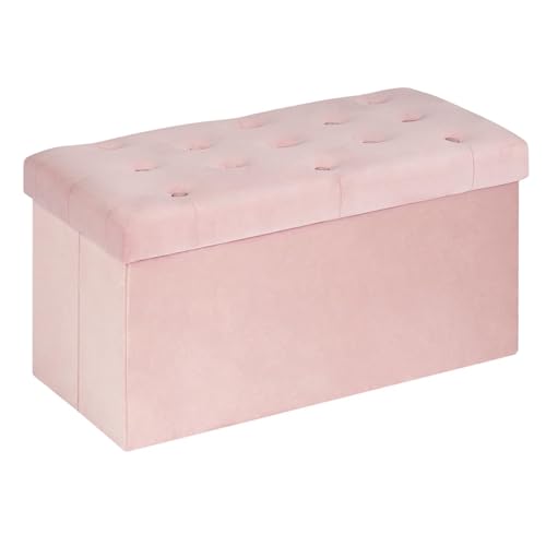 Bonlife Sits Bröstbänk Pall Förvaringslåda med lock Tyg Förvaringsutrymme Vikbar fotpall Sammetsduk, Rosa Vardagsrumsdekoration, 80 x 40 x 40 cm