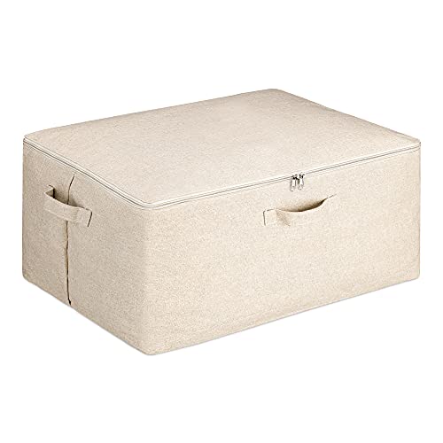 Navaris Förvaringslåda i tyg med dragkedja – 60 x 45 x 25 cm stor förvaringsväska med dragkedja för täcke, kläder, lakan, filtar – linneliknande materialblandning