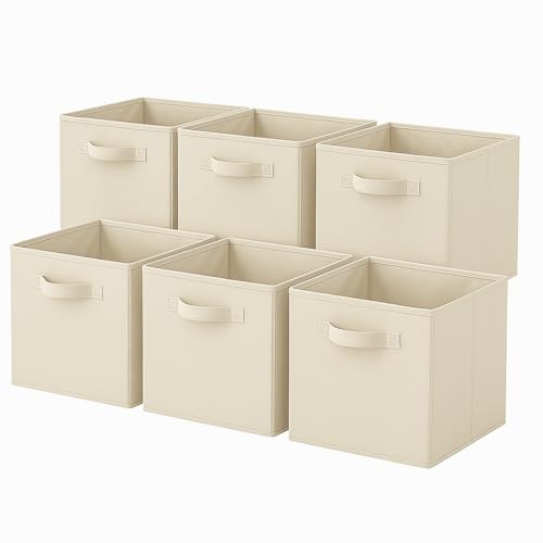 PowerKing Förvaringslåda i tyg, organiserare, 6 vikbara förvaringsbehållare, förvaringslåda, kub, beige