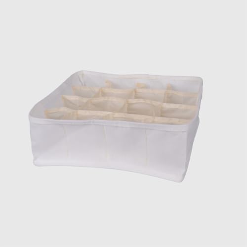 La Briantina Förvaringslåda i tyg med 16 fack – mjuk behållare för underkläder, strumpor och tillbehör, TNT 100% polypropen – 28 x 28 x 10 cm – grå eller beige