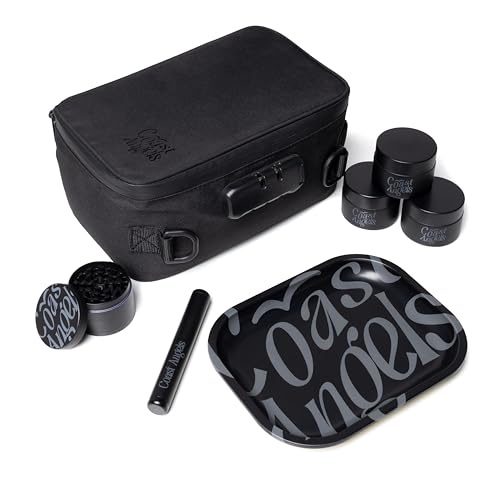 Luktfri Väska med Kodlås – Komplett Rolling Box Set med Luktfri Väska, Grinder, Rullbricka och Rör – Portabel Förvaringslåda för Utomhus, Festival och Fest