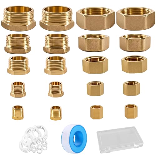 20 stycken blindproppar vattenledning inre gänga och yttre gänga 1/8 1/4 3/8 1/2 2/4 tum, mässing blindpluggar med förvaringslåda, mässingsplugg och lock för utomhus trädgård vattenrör