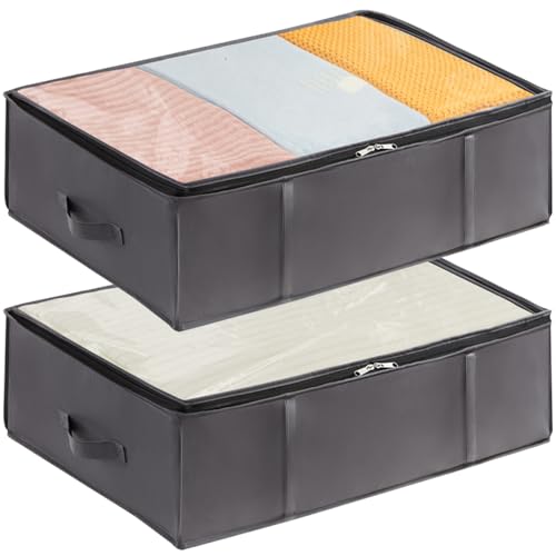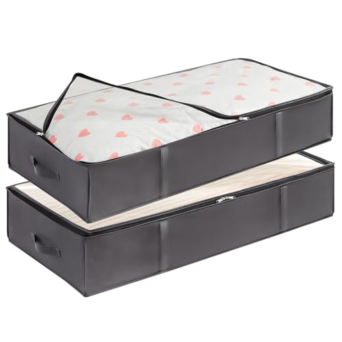 Lifewit Förvaringslådor under sängen, 2-pack, påsar med förstärkta handtag och stort förvaringsutrymme för filtar, täcken, kuddar, lakan, kläder i sovrum, garderob, studentrum, Grå