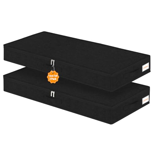 mepure 12 cm hög förvaringslådor med lock, 2-pack grunt klädförvaring för kläder med robusta sidoväggar/botten, smala förvaringslådor under soffan för täcken – svart