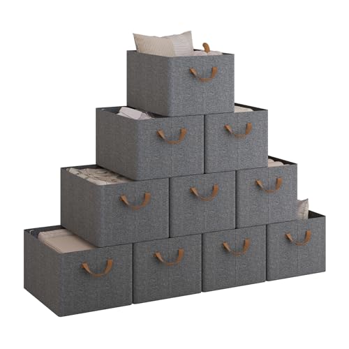 WOLTU Set med 10 hopfällbara förvaringslådor, hopfällbara förvaringslådor i tyg med handtag, förvaringslådor för kläder och leksaker, grå, 37,5 x 26 x 20 cm