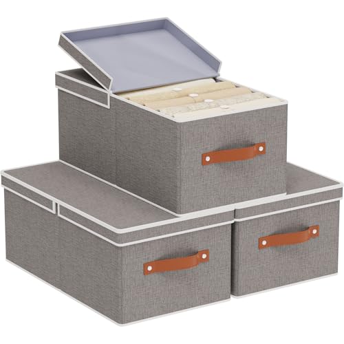 YheenLf Set med 3 stora hopfällbara förvaringshinkar med lock, förvaringslådor i tyg, med handtag, förvaringslådor för att organisera kläder, lakan i skåp, 41 × 25 × 16,5 cm, grå