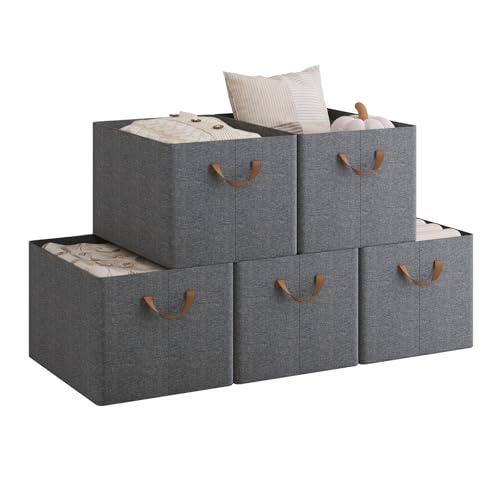WOLTU Set med 5 hopfällbara förvaringslådor, hopfällbara förvaringslådor i tyg med handtag, för kläder och leksaker, grå, 47 x 35 x 30 cm