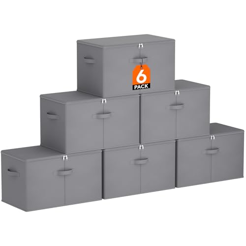 YheenLf 6 stycken vikbara förvaringskorgar, dekorativa förvaringslådor med handtag, garderobsorganisatör, för kläder, medium, 33 × 23 × 14 cm, grå