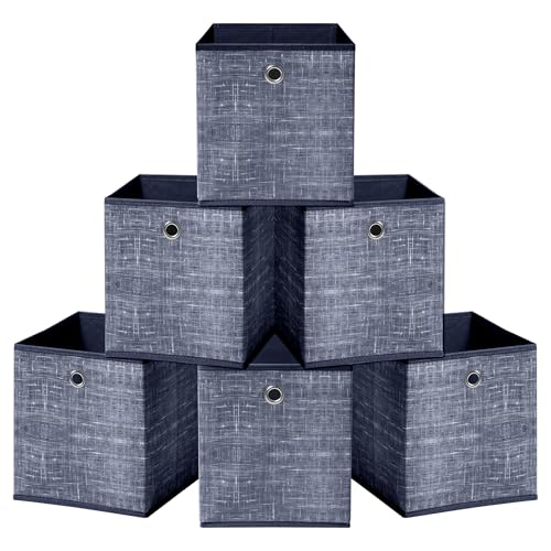 HEFTMAN Vikbara förvaringskublådor – set med 6 blå tygförvaringslådor med öljetthandtag, platsbesparande förvaringslådor i tygkub för kläder, leksaker, organisering (30 x 30 x 30 cm – blå)