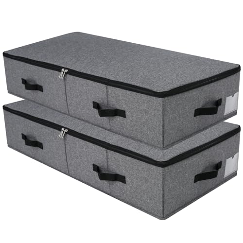 iwill CREATE PRO 2-pack, styva förvaringslådor under sängen med dragkedja för kläder, sängkläder, lakan, filtorganisatör, svart grå