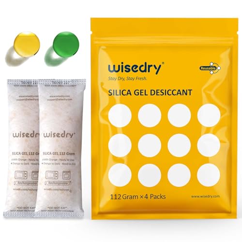 Wisedry silikagelpåsar, 112 g x 4-pack, Torkmedelspåsar för matkvalitet, mikrovågsugnar snabbåteraktiverar, fuktindikering och återanvändbar för kläder, mat, förvaringslådor