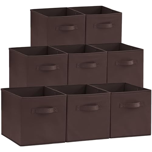 Lifewit Set med 8 vikbara förvaringskuber, förvaringskorgar i tyg, förvaringslådor, förvaringslådor med handtag, organisatörer för kläder, leksaker, 26,5 x 26,5 x 28 cm, brun