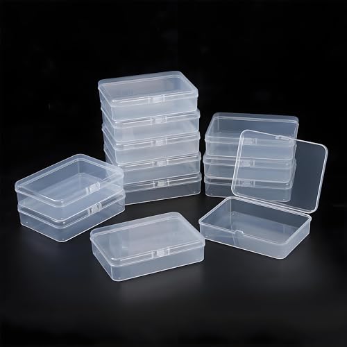 LJY 12 st tomma rektangulära förvaringslådor i plast med lock för små föremål och annat manuellt arbete 11,4 x 8,4 x 2,8 cm (transparent)