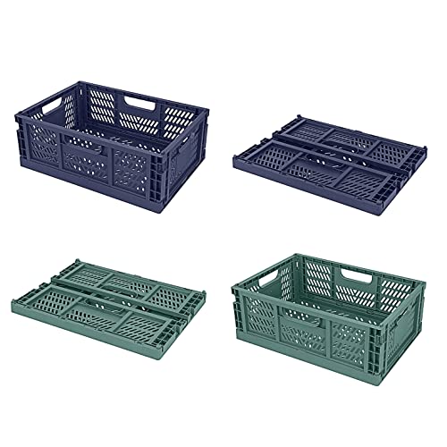 Spesh 4 st hopfällbara förvaringslådor, stora förvaringslådor, stapelbara förvaringskorgar, plast, vikbara lådor för kök, vardagsrum, kontor (2 x blå+2 x mörkgrön)