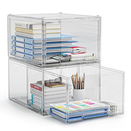 2-pack stapelbara förvaringslådor i plast, genomskinliga skrivbordslådor, 2 lådor förvaringsorganisatör, sminkorganisatör med lådor, arkyliska lådor organiserare för kontorsmaterial, skola, hem