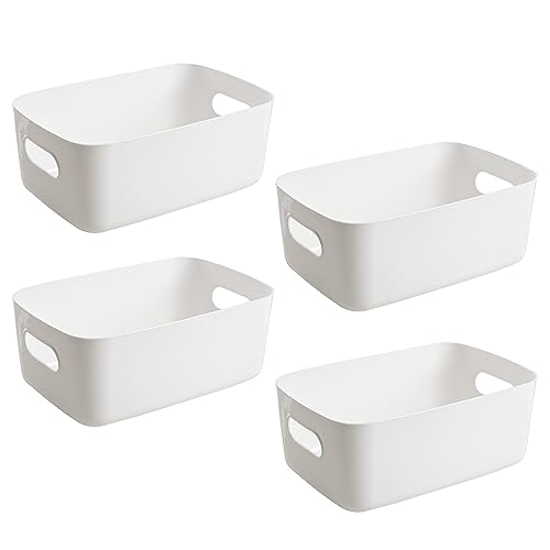 Jesdavan Förvaringslåda, vit, 4 stycken förvaringslådor, förvaringslåda, plast, korgplast, förvaringsbox, multifunktion lämplig för kök badrum garderob (20 x 14 x 7 cm)