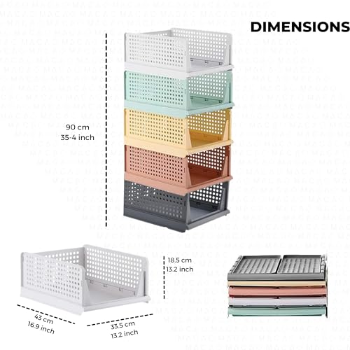 MACAO 5 stycken stapelbara garderobsorganisatör, lådlådor, skåpsorganisatör, stapelbar förvaringslåda i plast, förvaringslådor för kläder, sovrum, garderob (5, färgglad)