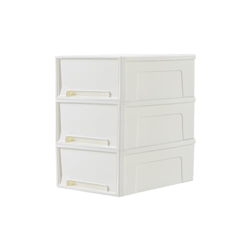 Cetomo 14 l x 3 kompakta staplingsbara förvaringslådor, organisatör av plast med vita dörrar för underhandfat, kök, skafferi, skrivbord och hemavskräckning, butiksskor och hantverksmaterial, 3-pack,