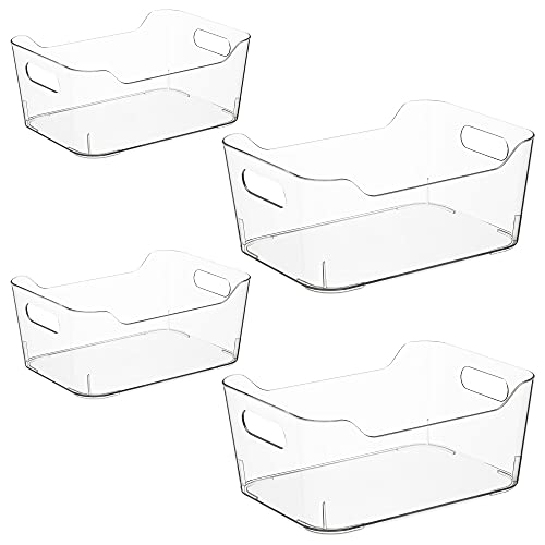 3-pack stora stapelbara förvaringslådor i plast, LINYAPRY genomskinliga förvaringskorgar med utdragbar låda för köksskåp skafferi kyl och frys hylla kylskåp organisation och förvaring