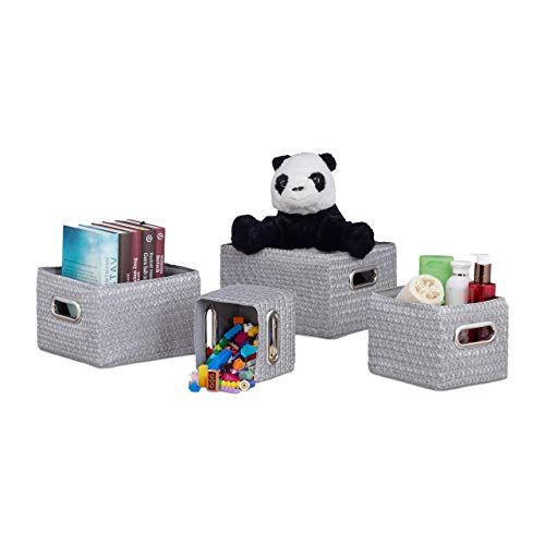 Relaxdays förvaringskorgar 4-pack, korgutseende, robust, förvaringslådor för badrum, plast, som hyllkorg, grå
