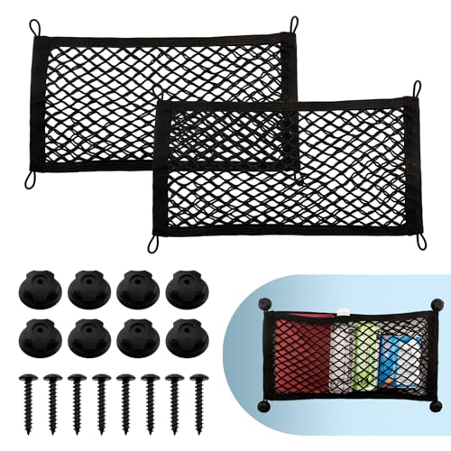 VEHIRIE Bagagetät Bil Bagageutrymme Nät, 55 x 25 cm 2 Stycken Förvaringsnät Med Fästskruvar för Bil, Husbil, Campare, Båtar, Van, Svart