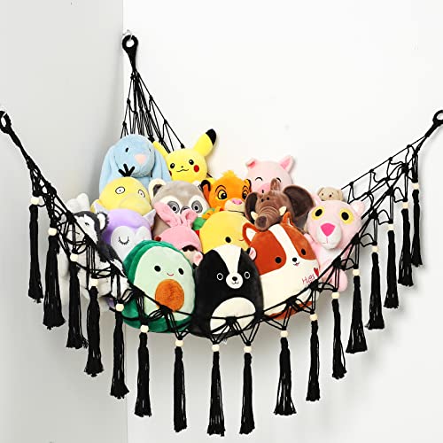 WUFANC Söt Förvaringsnät för Leksaker 2 Pack, Bohemisk Plush Förvaringsnät för Barnrum Dekoration - Söta Förvaringsnät för Enkel Organisering och Förvaring av Plush Leksaker