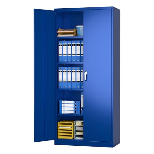 SUPEER Förvaringsskåp i metall med 2 dörrar och 4 justerbara hyllor, 180 cm högt stålskåp för lager, garage, hem, kontor, enkel montering krävs (blå)