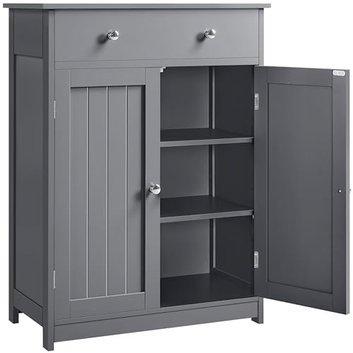 Yaheetech Badrumsskåp, underskåp, badrumsskåp med dubbeldörr och låda, golvskåp, badrumsskåp, förvaringsskåp för badrum, kök, vardagsrum, mörkgrå