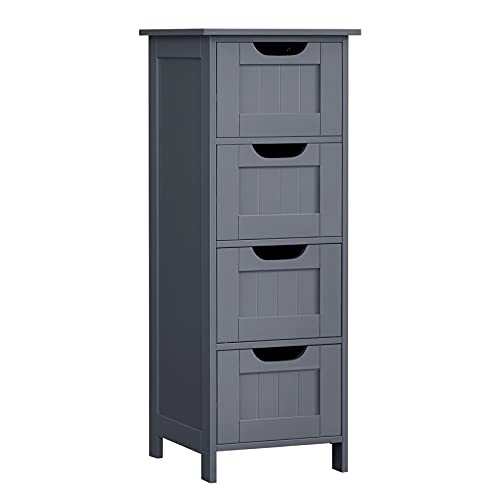 VASAGLE Badrumsmöbler, förvaringsskåp, stående skåp, med 4 lådor, 30 x 30 x 82 cm, för badrum, vardagsrum, matsal, kök, modern stil, grå LHC040G01