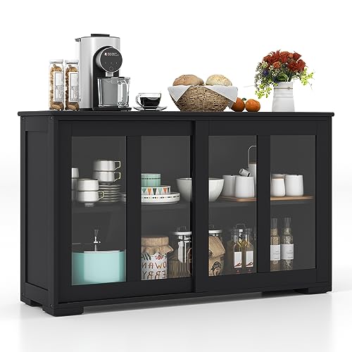 Costway skänk för köksskåp med skjutdörrar i glas, förvaringsskåp, justerbar hylla, serveringsbord för hall, kök, matsal, vardagsrum, 107 x 33 x 62,5 cm (svart)