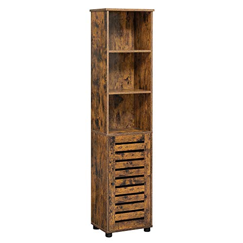VASAGLE Golvskåp, badrumsskåp med 3 öppna fack och 2 justerbara hyllor bakom dörren, förvaringsskåp för vardagsrum, entré, kök, sovrum, rustik brun BBK160X01
