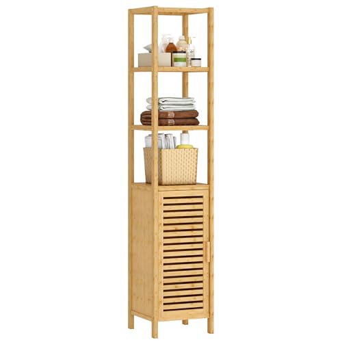 SogesHome Hög- och midiskåp, bufféer, bambu, sidoskåp, konsol, badrumsskåp, förvaringsskåp, skåp för kök, vardagsrum, badrum, hög- och midiskåp, underskåp för badrum