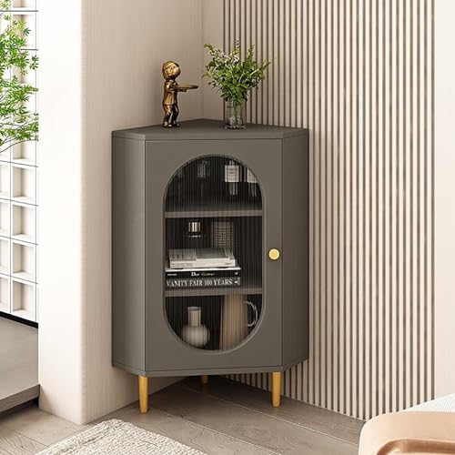 Hörnskåp - Fristående förvaringsskåp med glasdörrar, badrum Kök Vardagsrum Sovrum Vitrinskåp, Sidoskåp (Färg: Svart, Storlek: 50cm/19.7in)