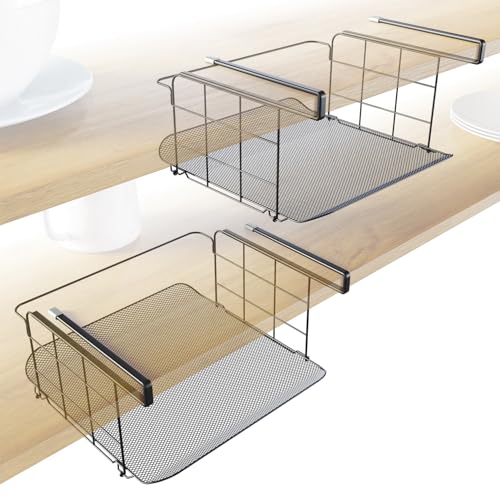 2 × Underhylla och förvaringskorg, nätdesign – allroundorganisatör och praktisk hängande korg för kök & förvaringsskåp (hygienisk att rengöra) kontor, av metall för hyllor, KD Essentials