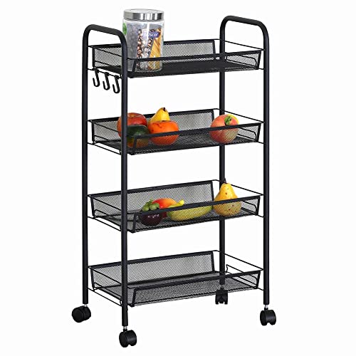 BAKAJI Vagn Multipurpose Vagn Skåp Förvaringsskåp Smal Bekväm Tunn Platsräddare Kök Badrum Kontor Inredning Design Interiör 4 Hyllor Svart 44x26x85 cm
