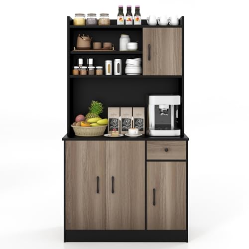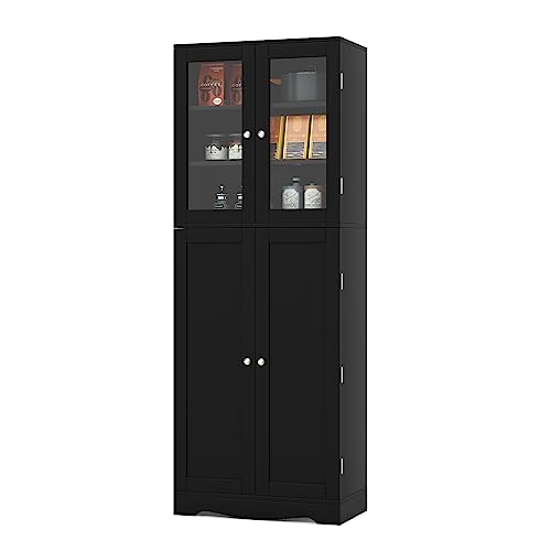 GOPLUS Köksskåp, köksbuffé med 2 glasdörrar och skåp, högskåp, fristående förvaringsskåp, högskåp för vardagsrum, kök (svart)