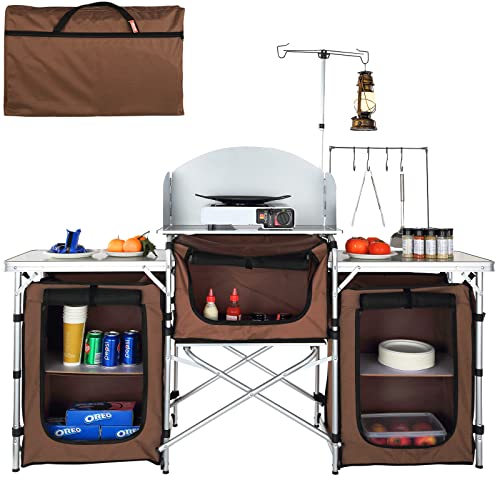 VBENLEM Utomhus camping kök hopfällbar trädgårdsmöbler justerbar camping förvaringsskåp