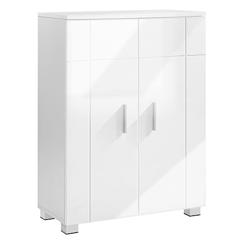VASAGLE badrumsskåp, mångsidig förvaringsskåp med dubbeldörr, 2 justerbara hyllor, för kök sovrum vardagsrum, glansigt, 60 x 30 x 82 cm, vit BBK144W01