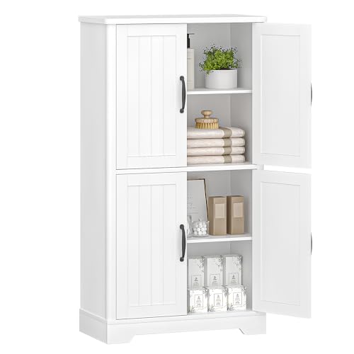 Hzuaneri Badrumsskåp, förvaringsskåp, ståskåp, dubbelvåning med 4 dörrar, justerbara hyllor, multifunktionsskåp för vardagsrum, kök, sovrum, vitt SC18413X
