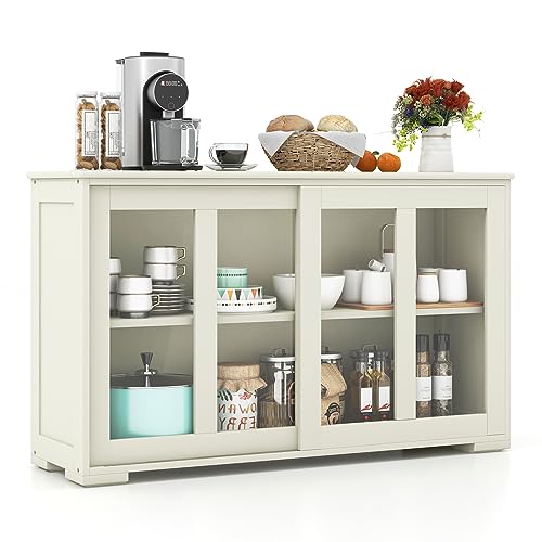 COSTWAY skänk, köksskåp med glasskjutdörrar och justerbar hylla, förvaringsskåp för kök, matsal, vardagsrum, 107 x 33 x 62,5 cm (vit)